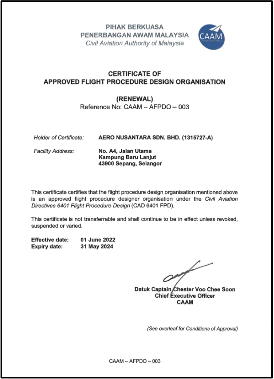We are a Malaysian Airspace Management and Air Traffic Control (ATC) Consultant certified as an Approved Flight Procedure Design Organisation (AFPDO) by the Civil Aviation Authority of Malaysia (CAAM) aiming to be the market leader in Southeast Asia's Next-Generation Low Level Airspace (Next-Gent LLA) Management for the Development of Urban/Advance Air Mobility (UAM/AAM) Eco-system and the Commercialization of UNCONTROLLED AIRSPACE.